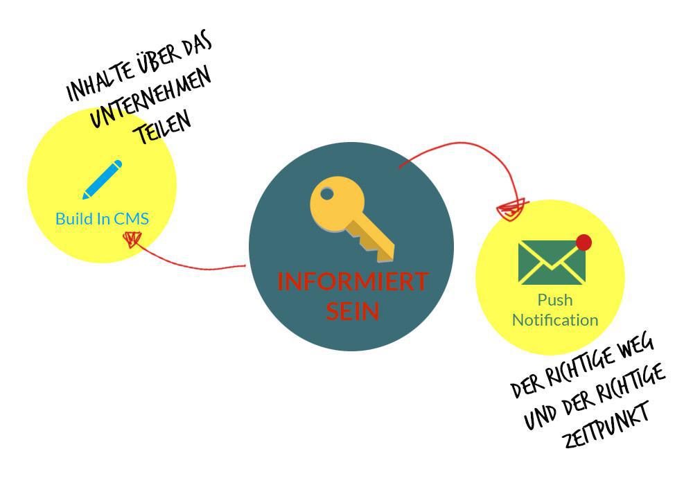 - Internes CMS: Dies ermöglicht Ihnen Artikel zu erstellen und Ihre eigenen Bilder, Videos und Sounds in Ihre App zu integrieren. Das Ziel ist hier lang anhaltende Inhalte zu kreieren, die wie ein Unternehmens Enzyklopädie fungieren und Ihre Mitarbeiter jederzeit aufrufen können.