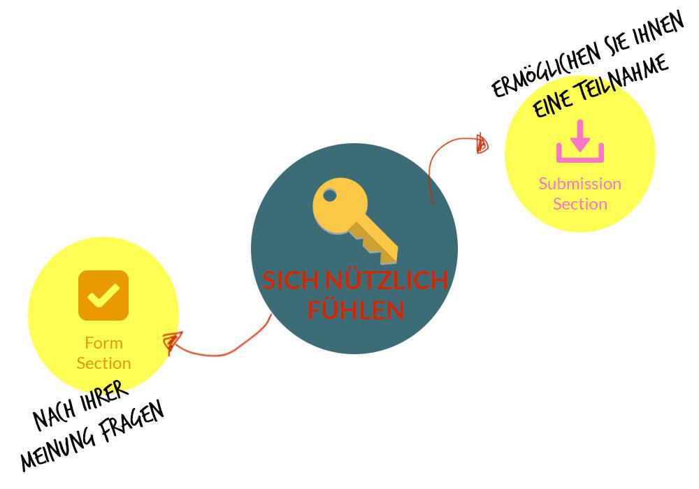 - Formular Bereich: Sehr nützlich für die Sammlung von Ideen. Hier können Sie die Meinungen eines großen Publikums bezüglich einem Thema einholen (Arbeitsplatz Ambiente, Cafeteria Qualität, etc.).
