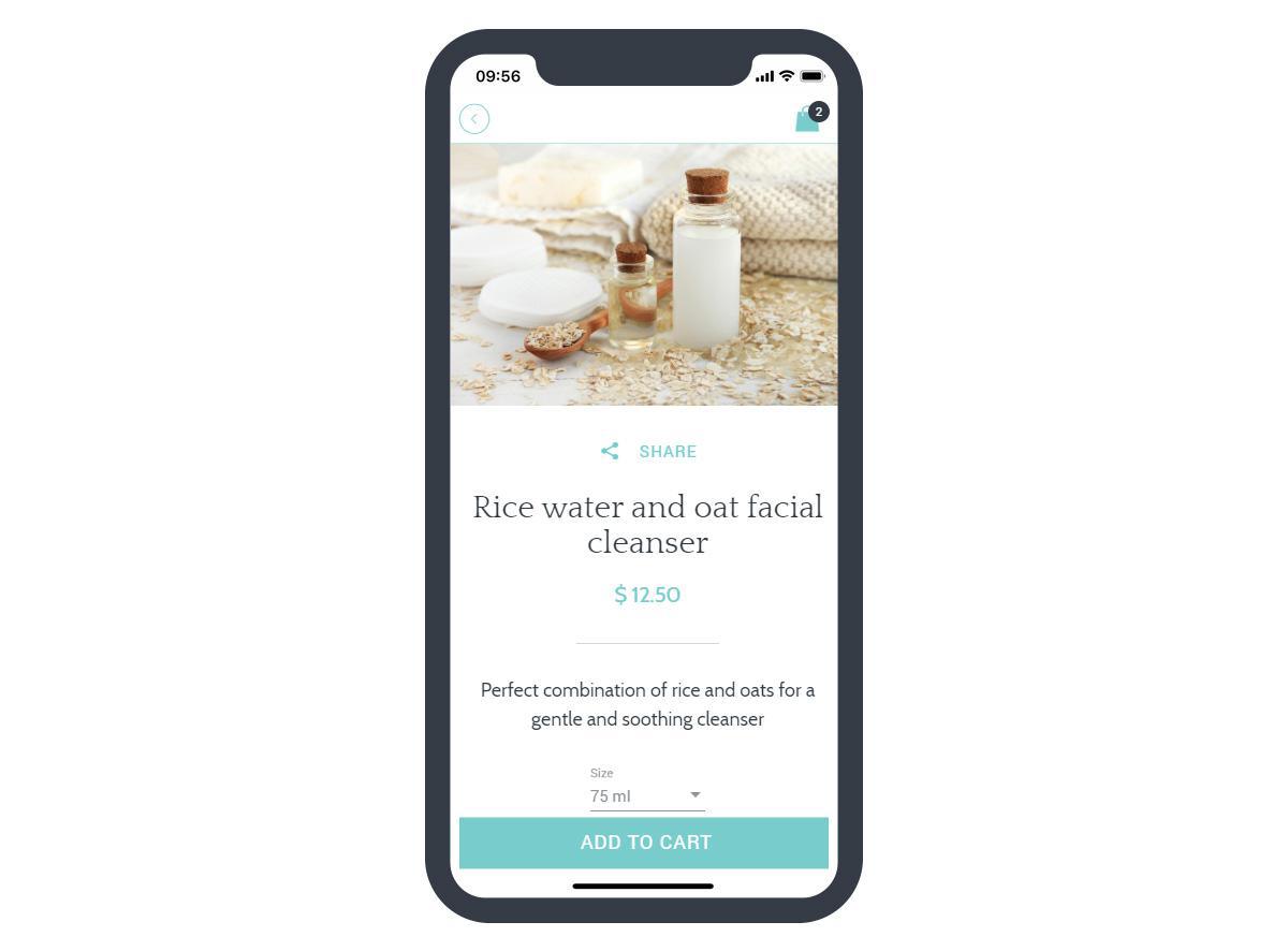 Dies ist der wichtigste Teil der Seite. Der Bereich um die Schaltfläche muss frei sein. Die Schaltfläche sollte sofort sichtbar sein, wenn der Kunde auf die Seite kommt. Auf Ihrer GoodBarber Produktseite können Sie die Farbe der Schaltfläche und die Farbe des Schaltflächentextes wählen. Wählen Sie einfache und direkte Formulierungen. Beschriftungen wie "Zum Warenkorb hinzufügen" oder "Bestellen" sind mehr als ausreichend.