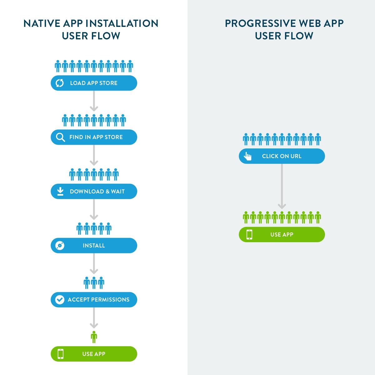 Apropos Download: Wäre es nicht interessant, alle Vorteile einer nativen Anwendung zu nutzen, ohne sie aus einem Store herunterladen zu müssen? Dies ist möglich und wird als PWA oder Progressive Web Apps bezeichnet.