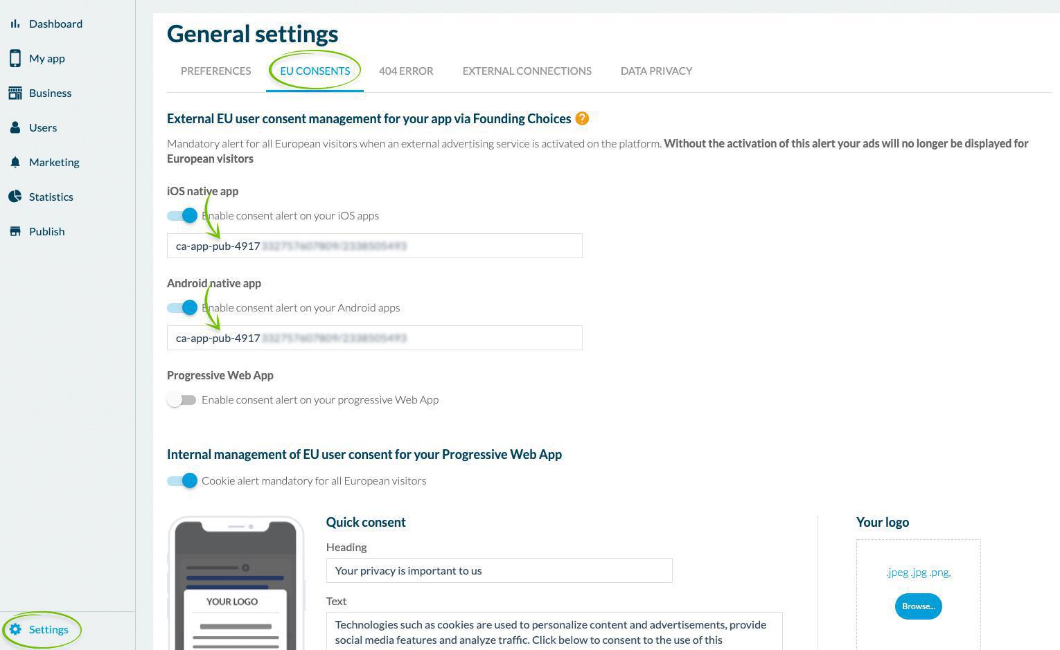 Wenn Sie über AdMob, Google Ad Manager und Google AdSense Anzeigen auf Ihren GoodBarber-Anwendungen für Ihre europäischen und britischen Besucher schalten, ist das für Sie.
