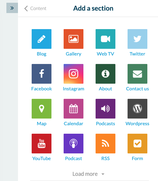 Im Menü "Bereiche" können Sie alle Bereiche hinzufügen, die in der App verfügbar sind, wie z.B. einen Kalender, eine Map, ein Formular oder einen HTML-Container. Diese Bereiche werden im Navigationsmenü zu finden sein.