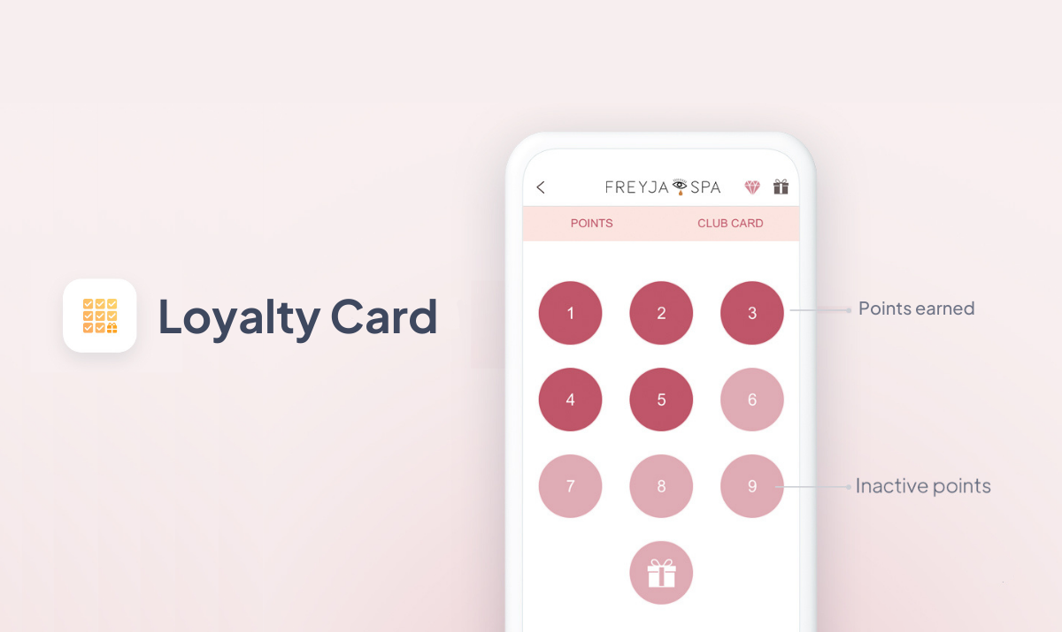 Die Treuekarte ist eine virtuelle Karte, mit der Punkte gesammelt werden können. Jedes Mal, wenn ein Kunde eines Ihrer Geschäfte besucht, kann er direkt von der App Ihres Geschäfts aus einen Punkt auf seiner virtuellen Karte übernehmen. Sobald die Karte ausgefüllt ist, erhält der Kunde ein Geschenk. Weitere Informationen über die Funktionsweise dieses Add-ons finden Sie auf der entsprechenden Seite .