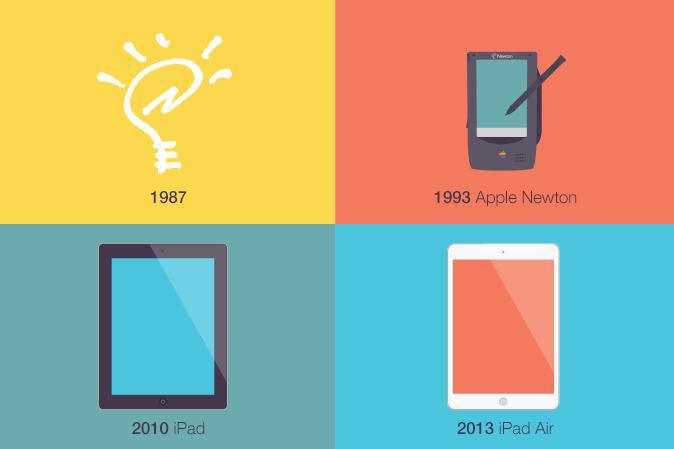 Was das iPad so interessant macht, mehr noch als seine Fähigkeiten als technisches Gerät, ist seine Geschichte. Das iPad ist eine fast perfekte Illustration von technologischer Möglichkeit die Endlich mit einer Vision aufholt, die Wichtigkeit vom Tüfteln, das ständige Anpassen und Verbessern einer Idee, und vor allen Dingen des Durchhaltevermögens.