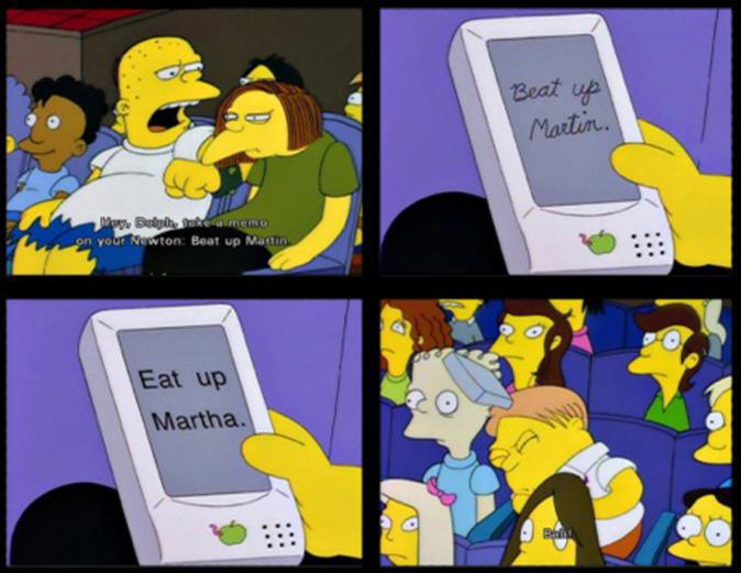 Die Funktion, die als "Killer App" des MessagePad vorgesehen war, nämlich Handschrifterkennung, funktionierte allerdings nicht so gut wie erwartet, und der MessagePad wurde bald zur Zielscheibe von Spott, und wurde selbst von den "Simpsons" aufs Korn genommen. Obwohl Apple die Handschrifterkennung verbesserte, war der Schaden bereits eingetreten, und Apple Newton wurde nie ein kommerzieller Erfolg. Apple Newton war möglicherweise einfacher seiner Zeit voraus, und wurde letztlich 1998 leise eingestellt.