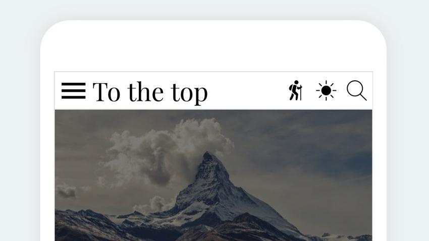 - Je nach Wunsch können Sie Ihre App intuitiver und wiedererkennbarer gestalten, indem Sie Ihr Symbol oder andere strategische Elemente einfügen. Entdecken Sie die Kopfzeile und die Schnellzugriffe für mobile Anwendungen, die Ihnen helfen, Ihre Online-Identität zu entwickeln, damit sie auf dem Bildschirm gut aussieht.