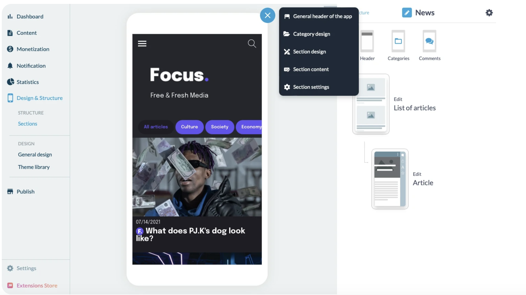 Mit dieser neuen Vorlage wollten wir ein transversales Element unserer Apps aktualisieren: die Multi-Kategorien. Dieses Element kann in allen Vorlagen für Listen aller Typen von Inhalten angezeigt werden.