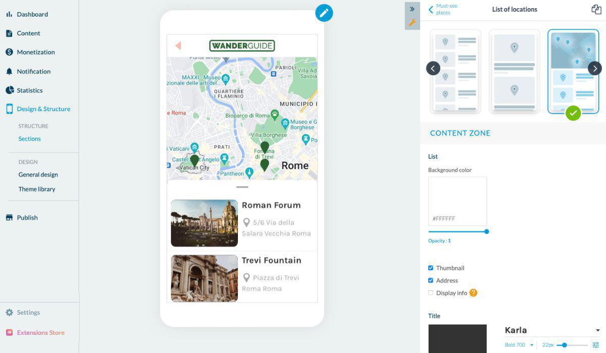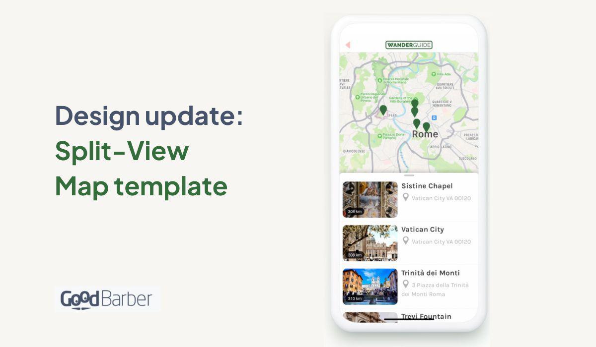 Mit dieser Vorlage schließen wir die Neugestaltung des Kartenbereichs ab, einer der beliebtesten Bereiche von GoodBarber. Dieses Template wird ausschließlich für Mobiltelefone verfügbar sein.