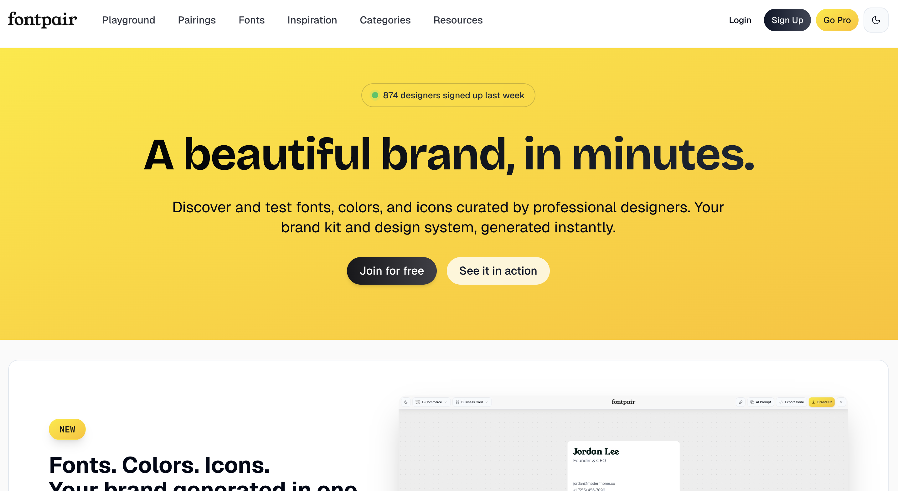 Fontjoy Ein Pairing-Generator, der auf einem Algorithmus für neuronale Netze basiert. Er analysiert die visuellen Eigenschaften von Schriftarten, um harmonische Kombinationen vorzuschlagen. Sie können eine Schriftart, die Ihnen gefällt, sperren und die anderen regenerieren, bis Sie die perfekte Kombination gefunden haben.