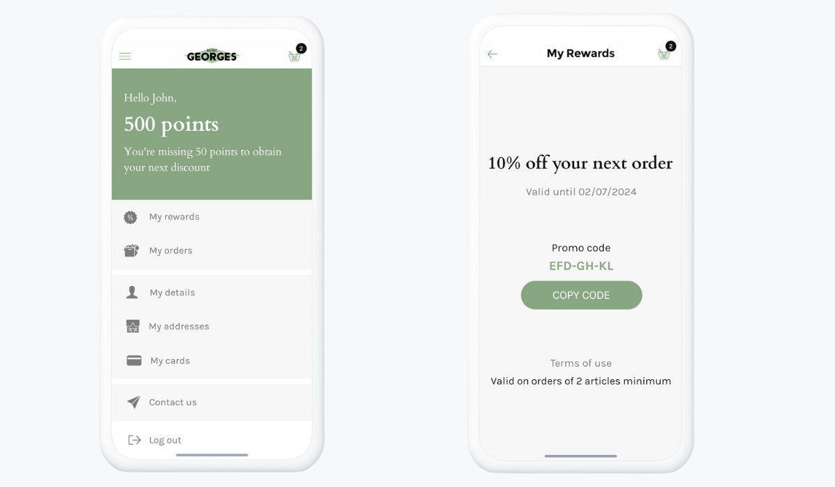 GoodBarber eCommerce App: Belohnen Sie Ihre Kunden und steigern Sie Ihren Umsatz mit einem Loyalty program.