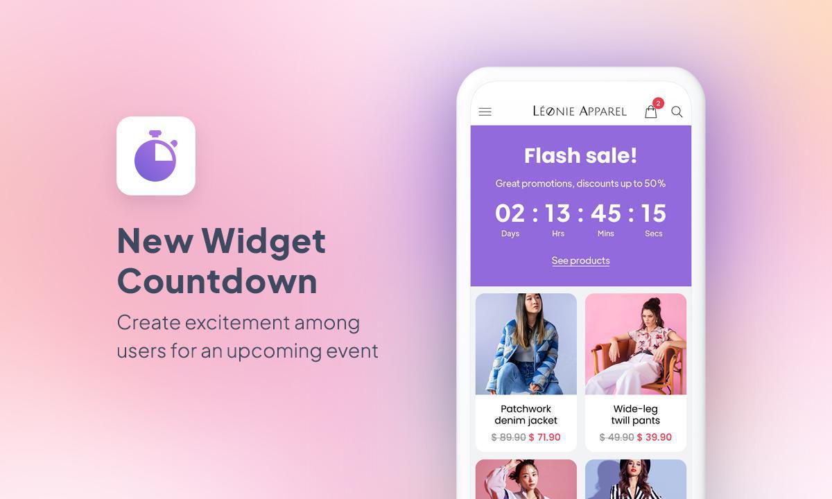 Fügen Sie mit dem Countdown-Widget einen eleganten Countdown-Timer zur Startseite Ihrer Anwendung hinzu. Dieses Widget ist ideal für Produkteinführungen, Flash-Promotions oder Veranstaltungen und verwandelt Warten in Aktion, indem es ein Gefühl von Dringlichkeit und Vorfreude erzeugt.