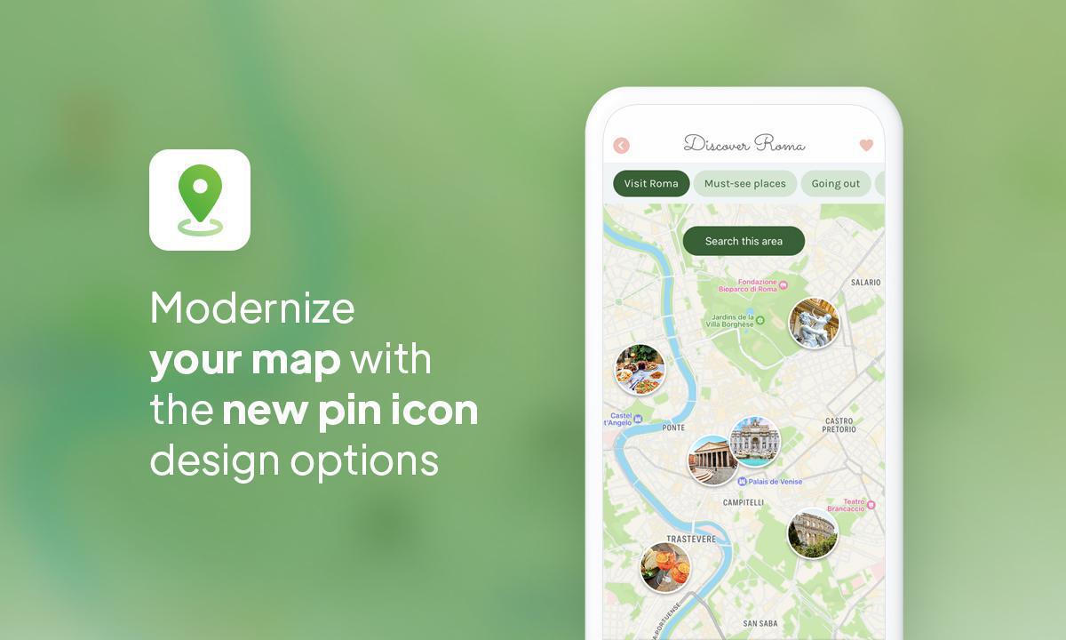 Passen Sie Ihre Karten mit neuen Symboloptionen an, um Ihre Anwendung attraktiver und interaktiver zu gestalten. Wählen Sie ein einzigartiges Symbol oder fügen Sie ein Bild hinzu, um Ihre Standorte visuell zu bereichern. Diese Ergänzungen bieten eine immersive Navigation und ermutigen Ihre Benutzer, weiter zu erkunden.