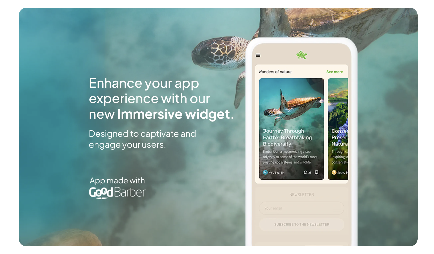 Wir bei GoodBarber verschieben ständig die Grenzen der Innovation, damit Ihr Erfolg auch der unsere ist. Das Immersive Card Banner ist ein weiterer Schritt in Richtung eines Horizonts, in dem jede Interaktion zählt. Legen Sie jetzt los und sehen Sie zu, wie Ihre Inhalte in nie dagewesene Höhen von Engagement und Schönheit aufsteigen.