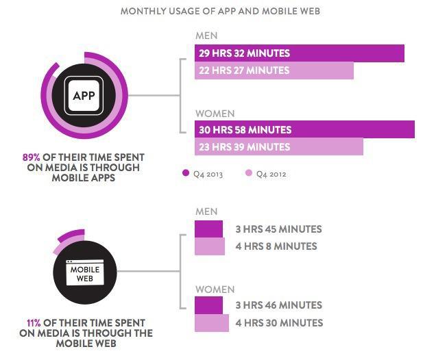 Wenn Sie Ihre mobile Strategie definieren, ist es sehr wichtig dass Sie daran denken, dass Nutzer den Zugang ins Netz über mobile Apps gegenüber mobilen Browsern bevorzugen. Die Daten von Nielsen zeigen, dass 89% des mobilen Internetzugriffs über Apps und nicht über Browser geschieht, und zwar hauptsächlich Email, Soziale Netzwerke und Nachrichten. Vorhersagen zufolge wird es bis 2017 mehr als 268 Milliarden Downloads von Apps geben.