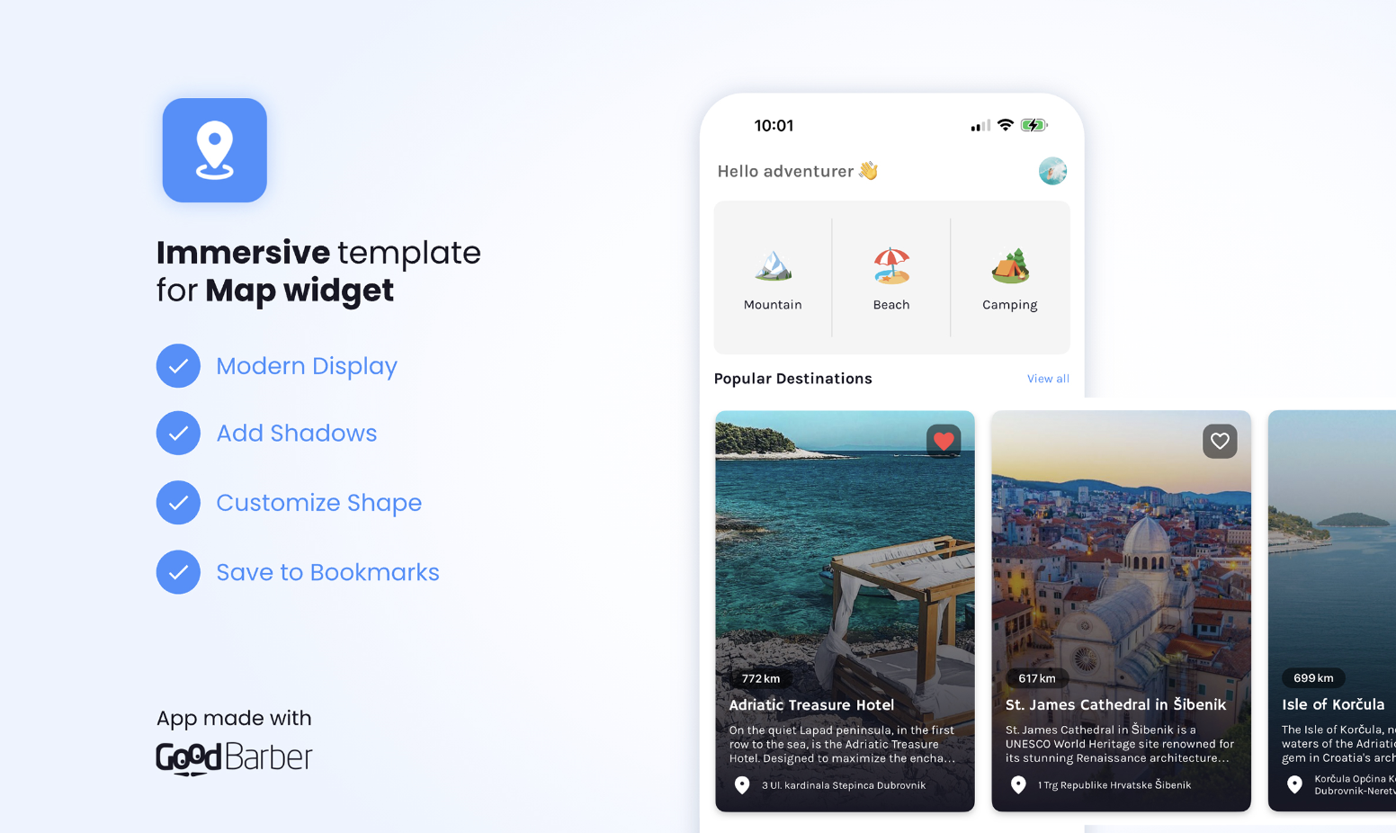 Wenn Sie bereits interaktive Karten in Ihrer App verwenden, wissen Sie, wie hilfreich dieser Bereich sein kann, um eine flüssige und visuelle Navigation zu bieten. Egal, ob Sie physische Orte wie Geschäfte, Veranstaltungen oder Sehenswürdigkeiten hervorheben möchten, Karten sind ein Schlüsselelement, um Ihre Nutzer zu führen. Mit dem Immersive Card Banner Template gehen wir einen Schritt weiter und bieten ein noch dynamischeres und visuell ansprechenderes Erlebnis.