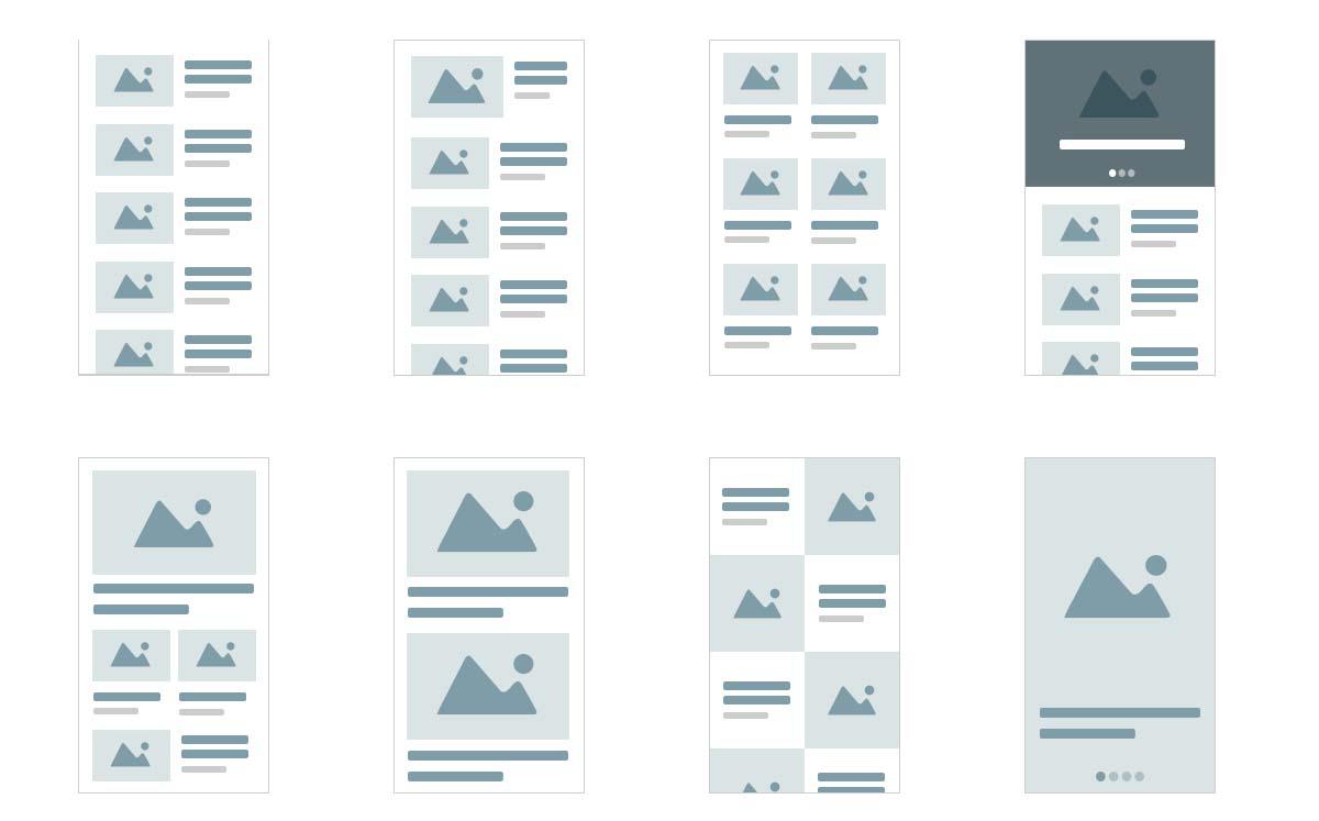 Bisher hatten Sie die Möglichkeit, aus 8 verschiedenen Vorlagen für Ihre Listen von Artikeln zu wählen. Mit diesen Vorlagen können Sie Ihre Inhalte in jedem Bereich hervorheben. Sie haben die Wahl zwischen Listen, Bildern und mehr oder weniger hervorgehobenen Fotos.