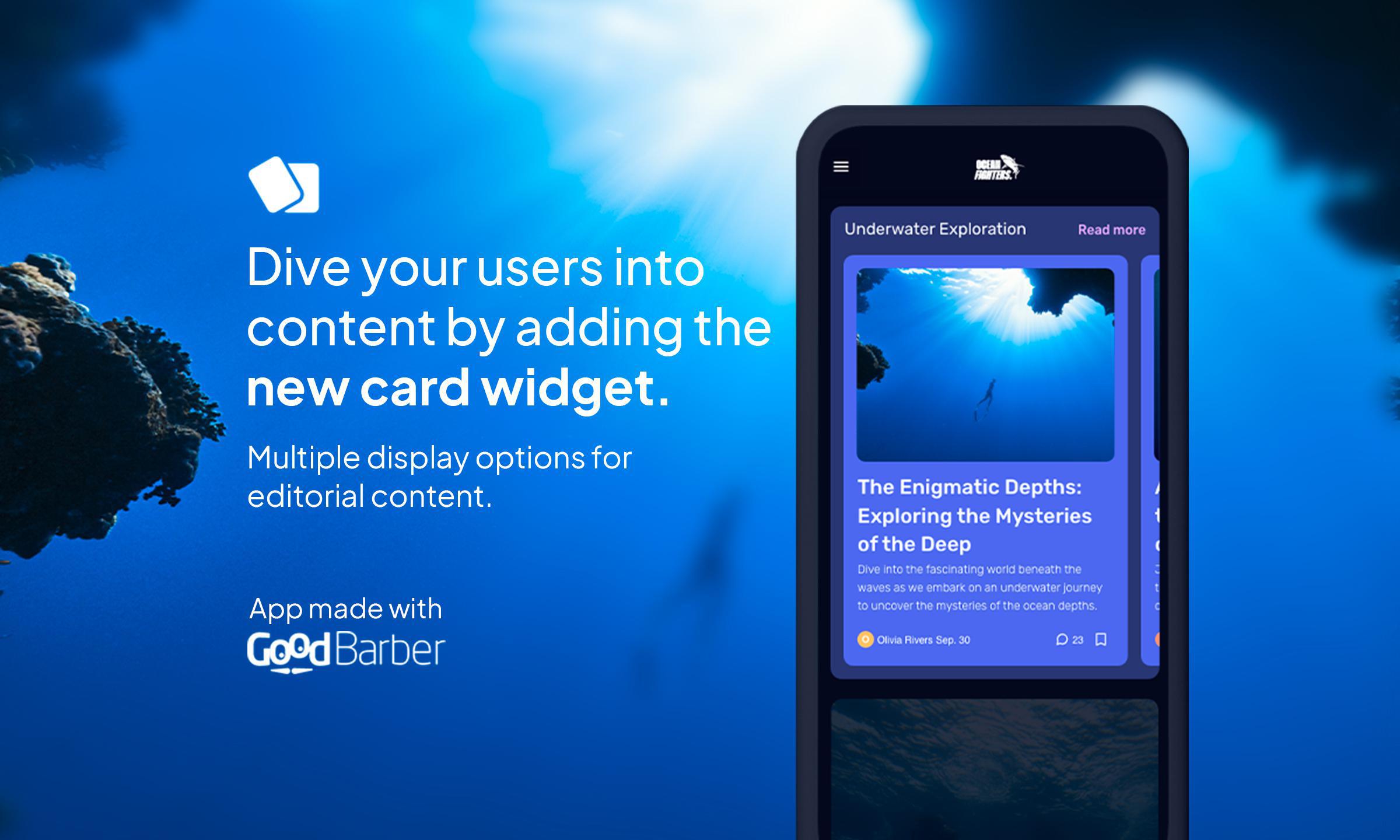 Wir bei GoodBarber sind ständig auf der Suche nach Mitteln und Wegen, um Ihnen einzigartige und fesselnde Benutzererfahrungen zu ermöglichen. In diesem Sinne freuen wir uns, die Veröffentlichung unseres neuesten Design-Juwels ankündigen zu können: die Vorlage Visual Cards. Dieses neue Design wurde speziell für das Übernehmen von Artikeln in ein Widget auf der Startseite Ihrer Anwendung entwickelt und passt perfekt zu dem modernen Trend, redaktionelle Inhalte hervorzuheben.