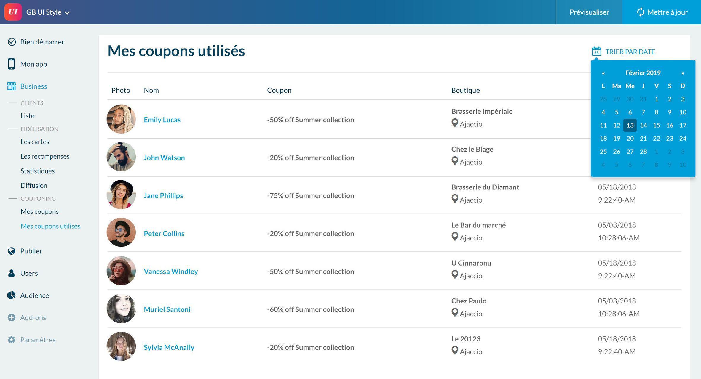 - Es wird Werbung für die Arbeit an Kartenanbietern gemacht: Widgets enthalten jetzt diese Elemente. Finden Sie heraus, welche Korrektur in diesem Monat auf dem Bildschirm zu sehen ist: Entwicklungen, die GoodBarber im November 2018 online gestellt hat. Bestellung nach Technologie (iOS, Android und PWA).