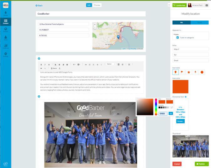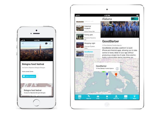 Dieser Bereich hat einen sehr spezial Design. Sie können wählen, die erste Karte oder die Liste von Orte schauen, und natürlich sind die anderen Instrumenten verfügbar um Ihre schöne App eine persönliche Note am Maximum zu geben.