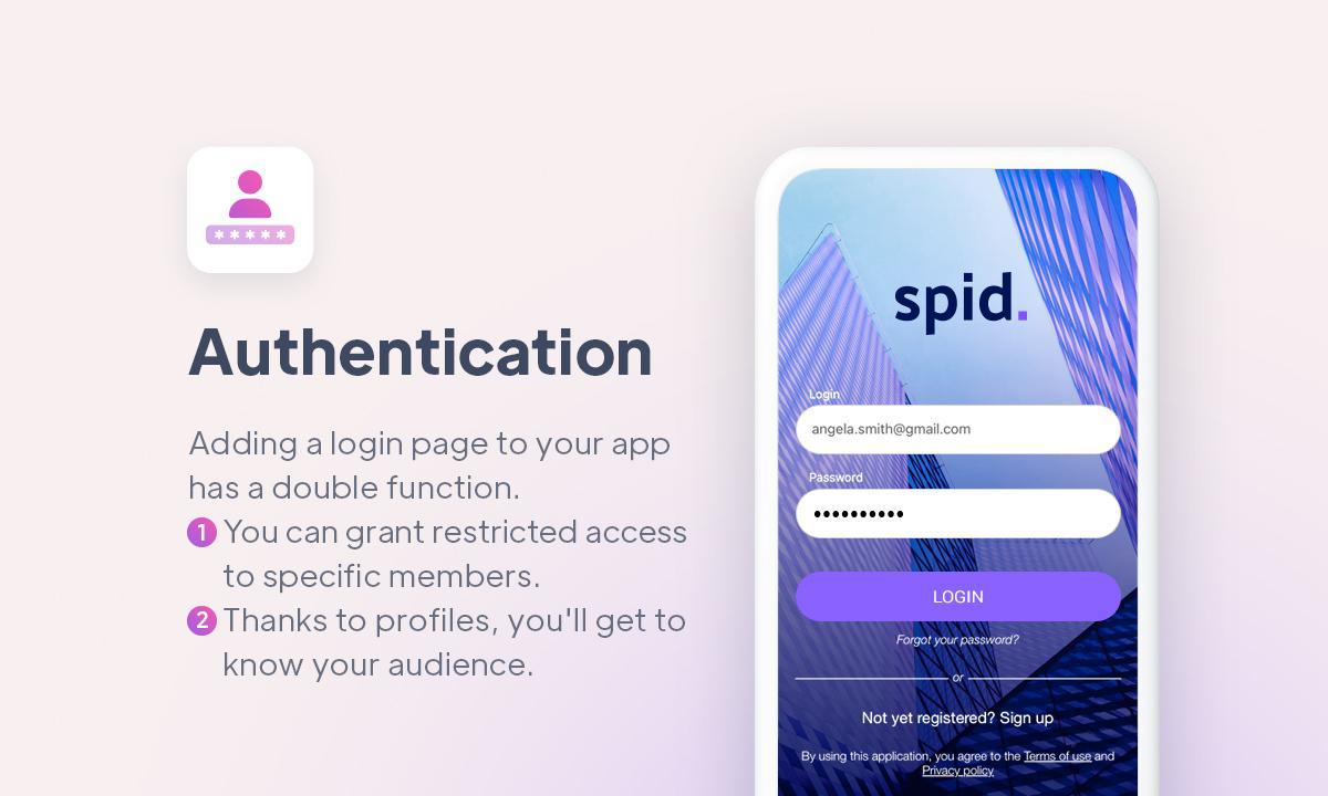 Das Add-ons "Authentifizierung" bietet Ihnen eine Reihe von Vorteilen. Zunächst einmal können Sie den Zugriff auf einen Teil oder Ihre gesamte App auf bestimmte Nutzer beschränken, was die Sicherheit und Vertraulichkeit Ihrer Daten erhöht. Sie können aber auch mehr über Ihre Nutzer erfahren und Ihre Inhalte und Strategien entsprechend anpassen.
