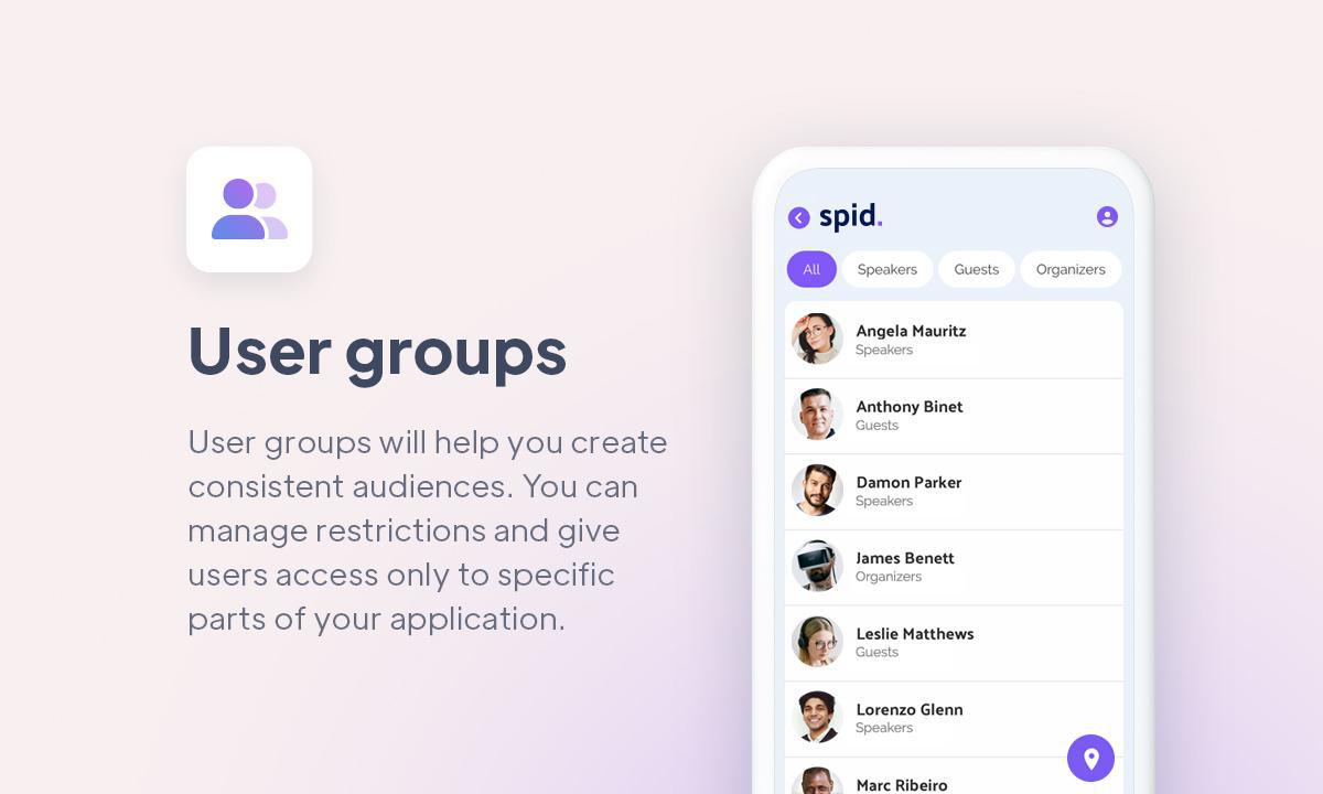 Darüber hinaus können Sie den Zugriff auf Inhalte entsprechend der von Ihnen definierten Gruppen übernehmen, indem Sie die Zugriffsrechte für verschiedene Bereiche Ihrer Anwendung anpassen. Mit diesem Add-ons können Sie maßgeschneiderte Anwendungserfahrungen für jedes Ihrer Zielpublika erstellen und eine einheitliche und ansprechende Erfahrung für Ihre Nutzer innerhalb der von Ihnen festgelegten Gruppen sicherstellen.