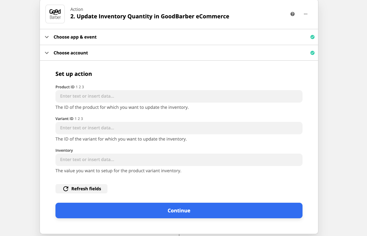 Die Aktion bezieht sich auf alle Maßnahmen, die von Zap ergriffen werden. Beispielsweise aktualisiert ein Zap jedes Mal, wenn eine Zeile zu einem Google Tabellenblatt hinzugefügt wird, den Bestand eines Produkts.