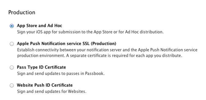Das iOS Distribution Certificate gibt Ihnen die Möglichkeit Ihre App für die Verteilung in den App Store oder für die Verteilung der Ad Hoc Version zu signieren. Dieses Zertifikat wird für alle Apps bereitgestellt, die mit diesem Konto erstellt werden.
