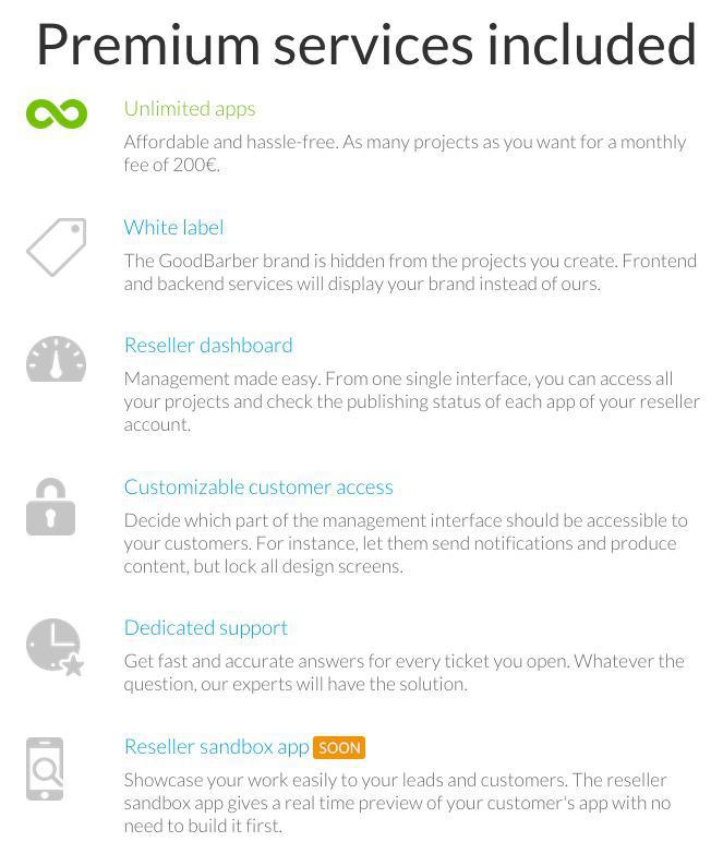 Genau hier kommt wir, GoodBarber, insbesondere mit unserem Reseller Programm ins Spiel!
